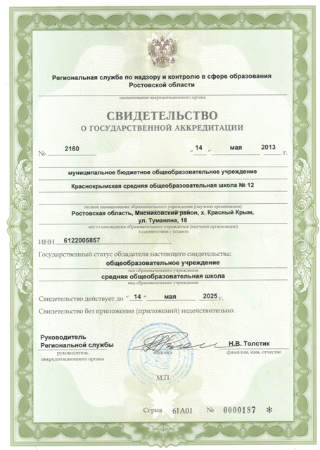 Свидетельство о государственной аккредитации