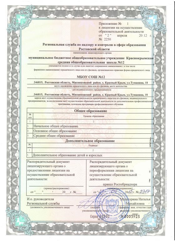 Полное наименование образовательной организации* Муниципальное бюджетное общеобразовательное учреждение Краснокрымская средняя общеобразовательная школа №12